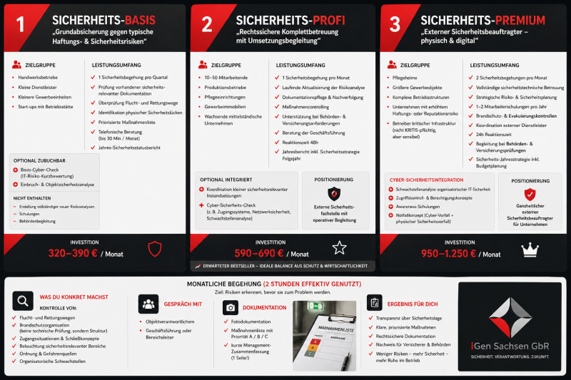 Wir unterstützen Unternehmen dabei, Risiken frühzeitig zu erkennen, strukturiert zu minimieren und nachhaltige Sicherheitssysteme aufzubauen – praxisnah, wirtschaftlich und rechtssicher.
